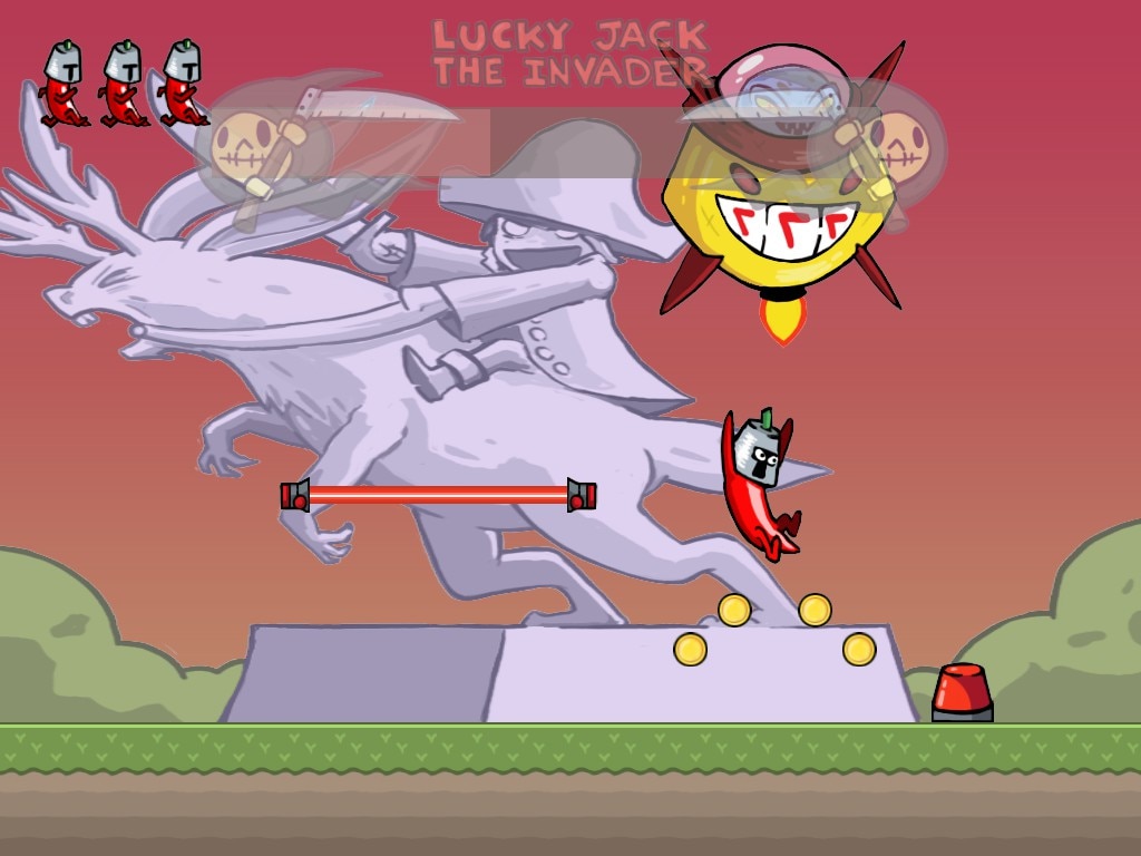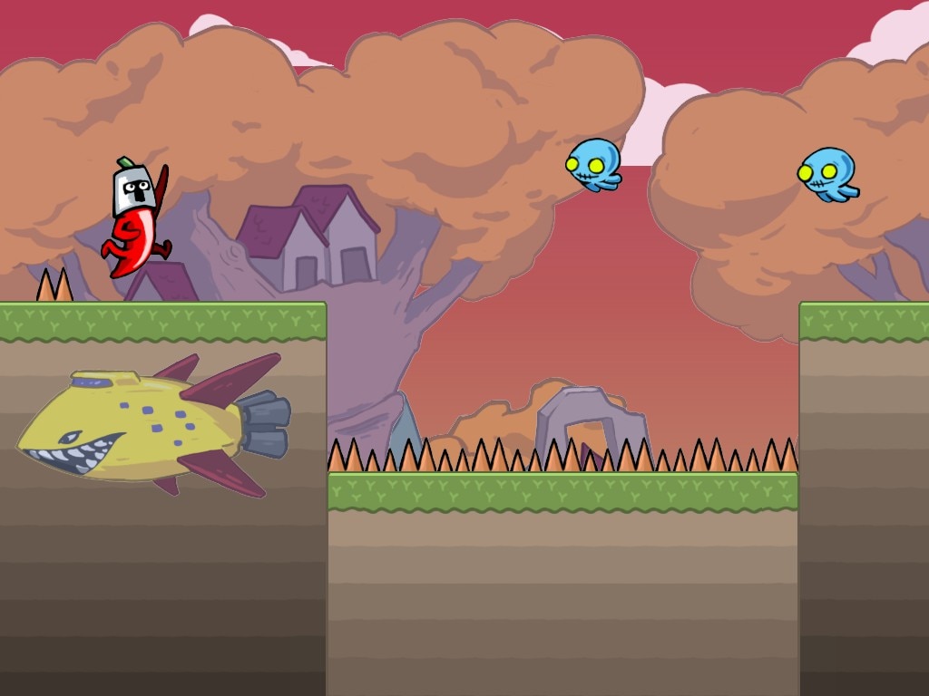Spoiler Alert brings you to a time reversing universe. You play as a chili pepper knight, beginning on level 3-30, fighting the boss, then playing all levels in reverse. It’s a pretty neat idea, honestly!